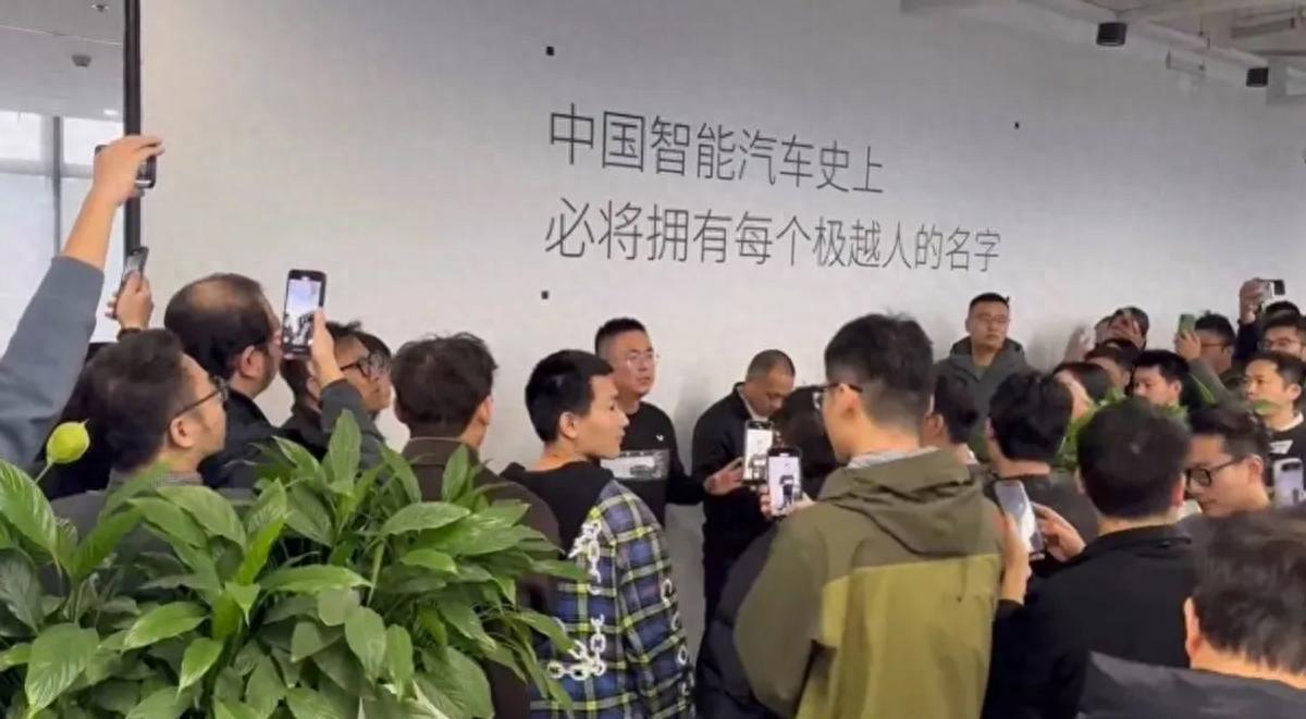 2024年12月12日,極越CEO夏一平被上百名員工圍堵在極越汽車總部。員工們情緒激動,紛紛討要薪水和社保,有人甚至擔心夏一平攜款潛逃,大聲喊道:“把護照留下來!”“把你的存款拿出來給我們交社保!”盡管夏一平當時努力解釋,但他畫下的“大餅”已經無人再信。這些員工的目的很簡單:解散可以,但該拿的錢必須拿到手。而背景墻上那句“中國智能汽車史上,必將擁有每個極越人的名字”,在這樣的場景下顯得格外諷刺。