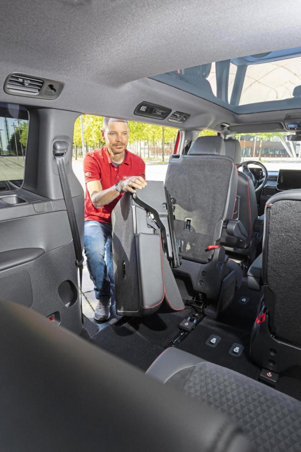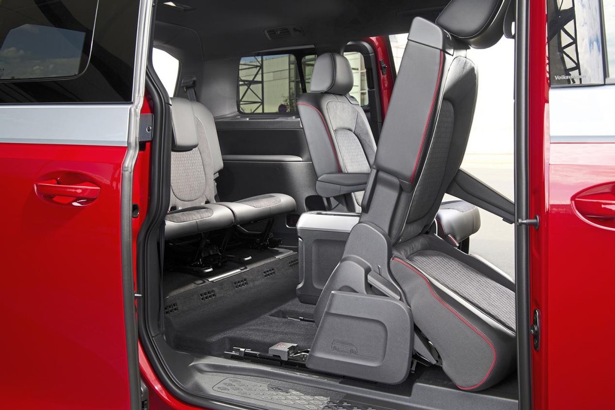 這兩種ID.Buzz車型現在都可以配備額外的座椅,短軸版可額外增加至六座(2-2-2布局),價格為1261歐元;長軸距可增加至七座(2-3-2布局,價格為1351歐元)。在長軸距版中,通過延長19.2厘米的滑動門和第二排縱向滑動的外側座椅,提供了方便的進入功能,因此可以輕松進入兩個折疊座椅中。舒適性和尺寸更適合成年人乘坐,而長軸距帶來的空間也非常寬敞。如果需要運送行李,所有后排座椅都可以折疊到中間地板高度,這樣就可以將行李廂容積(306~2469升)分為地下層和夾層。此外,還可以拆卸兩個折疊座椅。不過,由于其重量較大,我們不建議這么做。