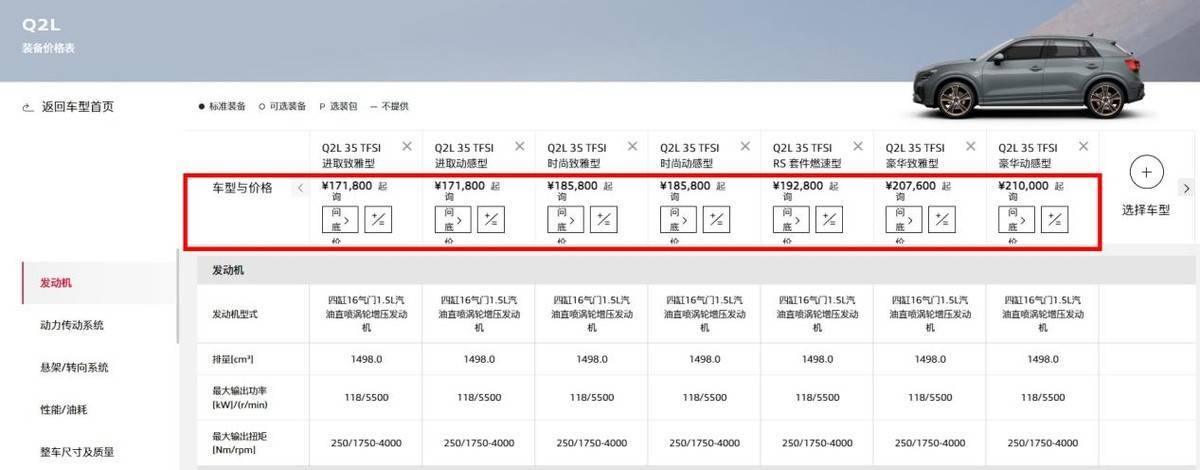 在配置方面,奧迪Q2L雖然提供了一系列標準功能,如6安全氣囊、主動剎車、前方碰撞預警等,但最低配車型仍然缺少一些實用功能,如倒車影像、主副駕駛電動調節、無鑰匙進入與啟動等。這些配置的缺失在一定程度上影響了消費者的購買意愿。