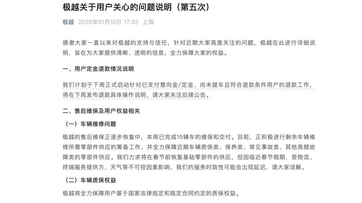 對于承諾負責售后的吉利來說,也是同樣的道理。有極越車主透露,極越的維修雖然歸領克了,但維修是需要工具和備件,維修完還需要標定......這些領克都需要花時間去準備。