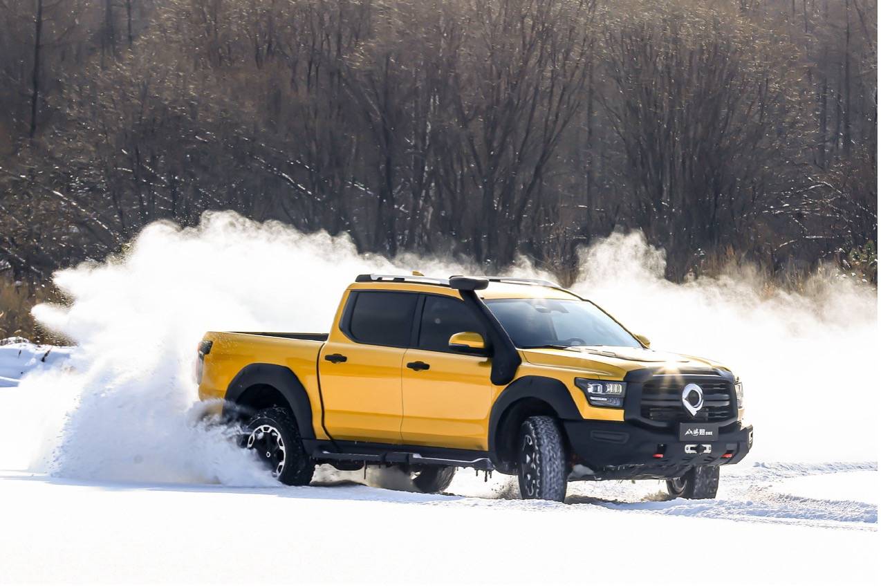 新車的接近角30°、離去角26°、涉水深度700mm、離地間隙260mm,高底盤設計讓車輛在越野時能夠更好地通過崎嶇地形。配備分時四驅系統,搭配前后橋電控機械式差速鎖,即使三個車輪同時打滑時,車輛也可脫離困境,通過性極強。