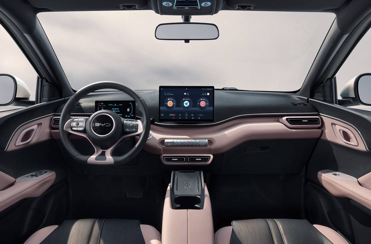 作為小型車,繽果的車身長度為3950mm,軸距為2560mm,同樣提供4座布局,后備廂最大容積為1240L,尺寸和空間表現(xiàn)上優(yōu)于比亞迪海鷗。內(nèi)飾方面,五菱繽果采用黑、白、棕等經(jīng)典拼色設(shè)計(jì),采用了大量的圓形幾何設(shè)計(jì)及高亮鍍鉻進(jìn)行裝飾。配置方面,該車搭載雙10.25英寸懸浮式雙聯(lián)屏,功能上與比亞迪海鷗相差不大,提升了科技感。