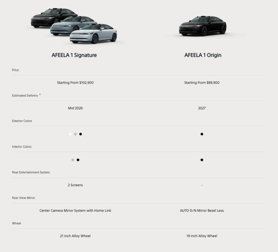 近日,在2025年CES展上,索尼與本田合資推出的AFEELA品牌,正式發布了旗下首款量產車險——AFEELA 1。新車計劃在美國俄亥俄州工廠生產,并于2025年在美國加州正式銷售,2026年中期交付,一共有兩種配置,海外售價分別為8.99萬美元和10.29萬美元,折合人民幣高達65萬、75萬以上。如此高昂的售價之下,這款由日本兩大“大法”聯手打造的新車,到底有什么能力呢?我們一起來看看。