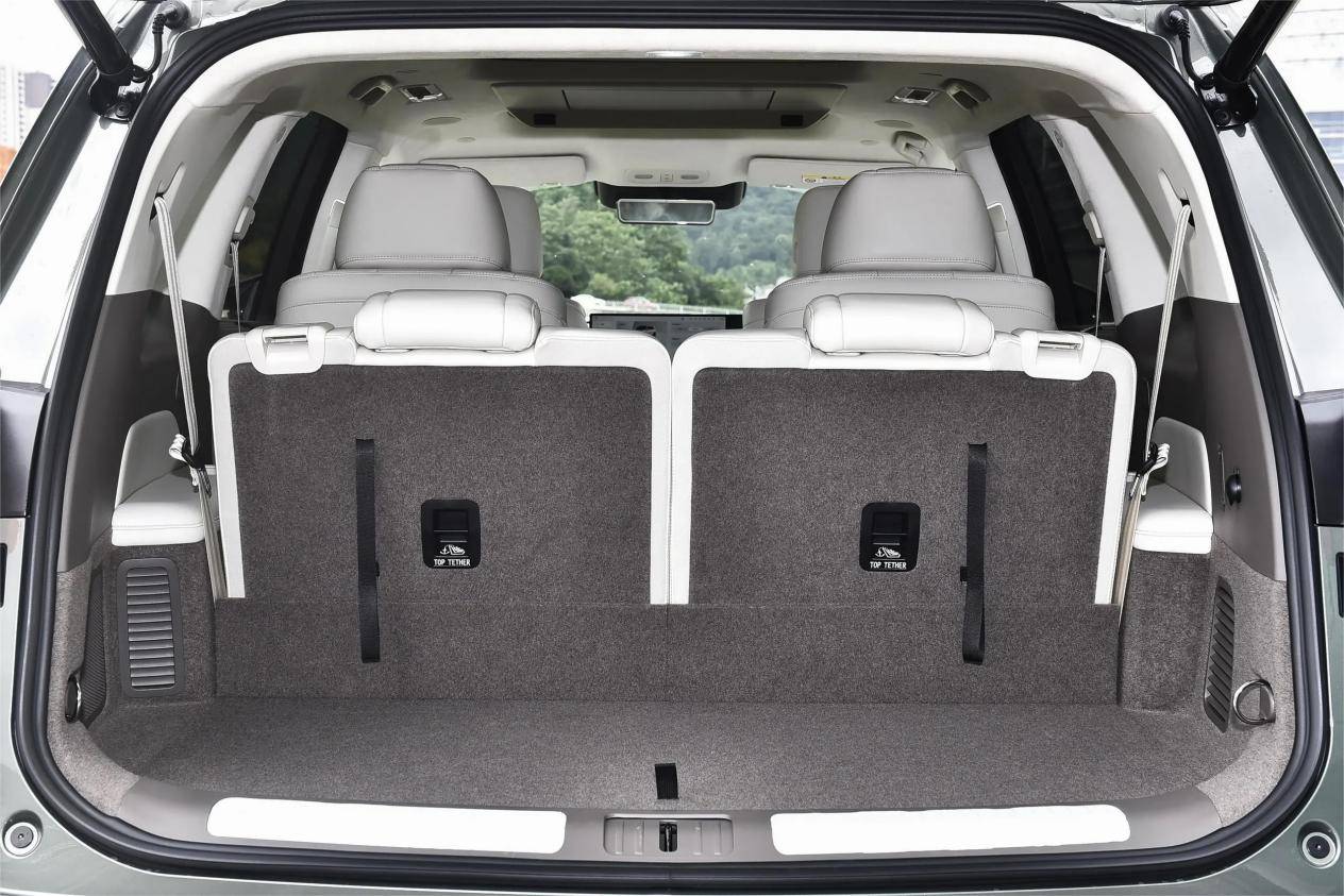 后備廂常規(guī)容積349升,受尺寸和軸距的影響,后備廂縱深不算大,能放得下4個(gè)小行李箱和一些背包等行李,如果是換成24英寸行李箱可以放下2個(gè),滿載攜帶行李確實(shí)有點(diǎn)局促,不過非滿載情況下,則可以通過放倒第三排的部分座椅或全部放倒來拓展空間,最大能拓展到1150升,還是很能裝的。