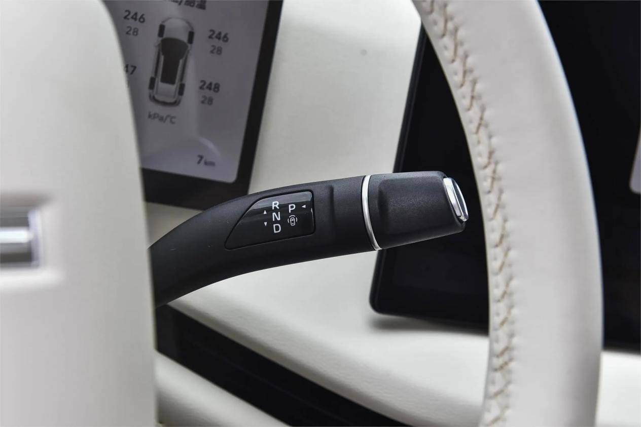 車身用了很多平直的線條,外形較為硬朗,貫通式腰線從前大燈延伸到后尾燈,后方與肩線融合,提升層次的同時(shí)也帶來更強(qiáng)的力量感,車頂線條平直,對(duì)后排空間友好,D柱粗壯有力,造型棱角分明,配備隱藏式門把手和20英寸五輻式低風(fēng)阻輪轂,輪胎規(guī)格255/50R20,也可以選裝21英寸的輪轂和265輪胎,但就舒適性來看,20英寸的輪轂和輪胎要更好一些。