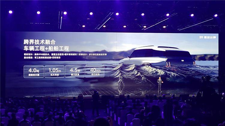 縱橫G900搭載縱橫方舟技術和縱橫兩棲黃金增程CEM-O系統,車尾設有專門為水中推進使用的800V高壓渦輪推進器,甚至還動用了船舶工程的技術,艙體擁有IPX8級防水性能,涉水部位還經過船舶級防銹處理。