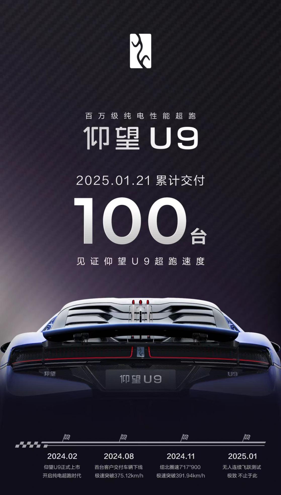 截止到2025年1月21日,仰望U9累積交付達(dá)到100臺(tái),大家要知道,這可是上百萬(wàn)的車,跟市面上的超跑銷量一比你就知道了,據(jù)媒體發(fā)布的2024年第四季度百萬(wàn)級(jí)跑車銷量榜,仰望U9位居第4 名,上一名是法拉利296,是上榜的唯一一輛國(guó)產(chǎn)跑車,也是唯一一輛新能源超跑。并且仰望U9仍然在持續(xù)穩(wěn)定交付中,下一個(gè)排行榜,說(shuō)不定就進(jìn)前三了。