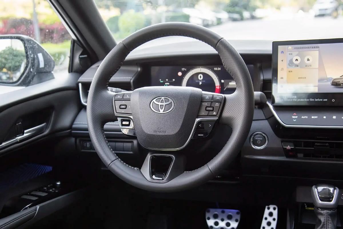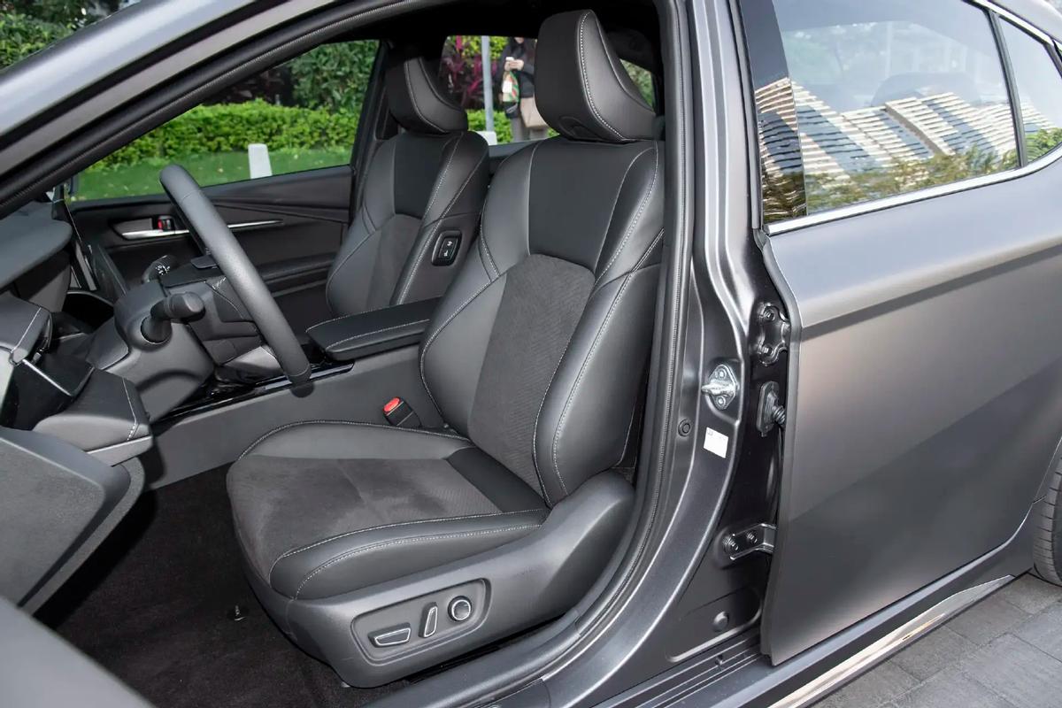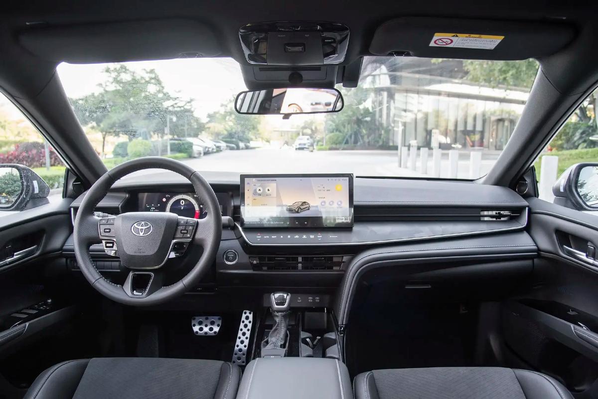 內飾方面,凱美瑞采用了與皇冠轎車相同的三輻式真皮方向盤,并采用了嵌入式12.3英寸儀表盤與懸浮式12.3英寸觸控屏,后者的下方布局了電阻式觸控面板,副儀表臺上除了貫穿出風裝飾之外,也提供了L型多層縫線軟包。同時,車輛繼續使用著傳統機械擋把,并在部分區域加入了烤漆撞色裝飾,而座椅則為真皮+仿皮混織覆蓋。