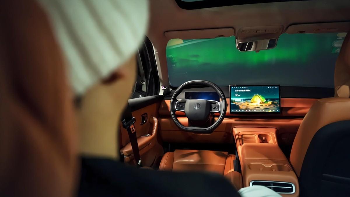 倘若不想睡,而是準備在車里小憩一下,可以選擇只放倒零跑C10的前排靠背,從而構成類似沙發的效果。同時零跑C10的車機系統也內置了不同的模式如休憩模式、露營模式,開啟后車輛會自動調整空調溫度、音樂等,營造更好的休息氛圍。
