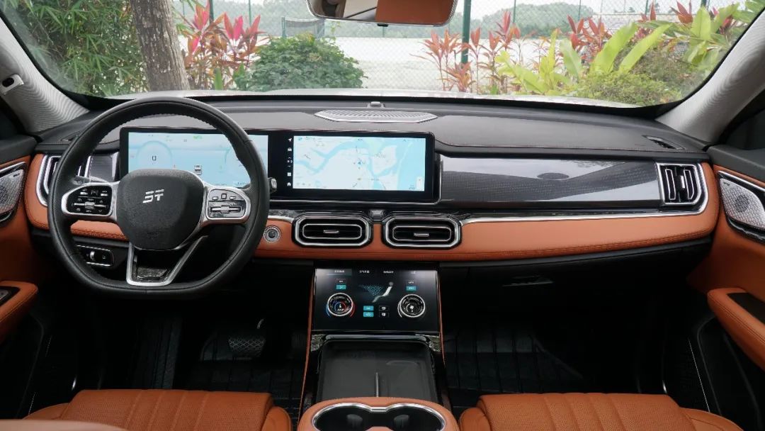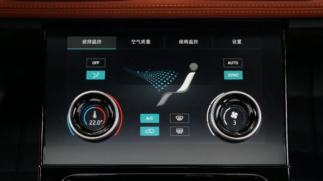 捷途山海L7的車內部分標配12.3英寸雙聯屏,下方還帶有一套專門控制車內空調溫度、座椅通風的旋鈕和觸控屏,當然,座椅通風加熱功能需要頂配和次頂配,即Ultra和Max+版本才有提供。