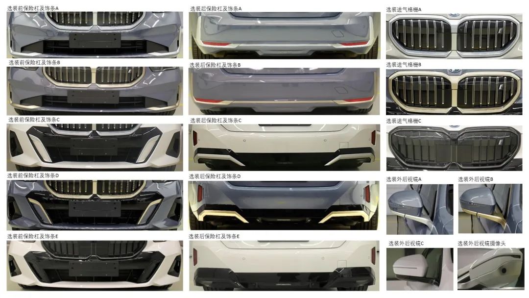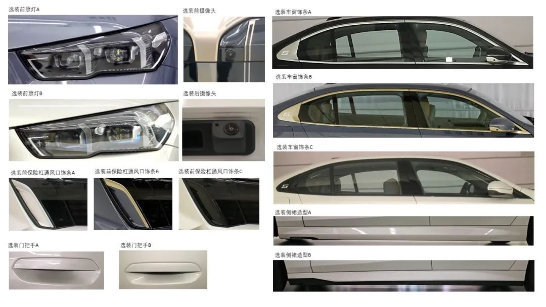 從公示的第一張照片我們可以看到,除了此前我們熟知的前后保險杠與飾條造型(A、B、C、D),此次新增加了E選項,黑色高光的設(shè)計看起來更具運動氣息。同時,進氣格柵與外后視鏡也新增了C選項,大面積的熏黑處理,營造出深邃且犀利的視覺效果。