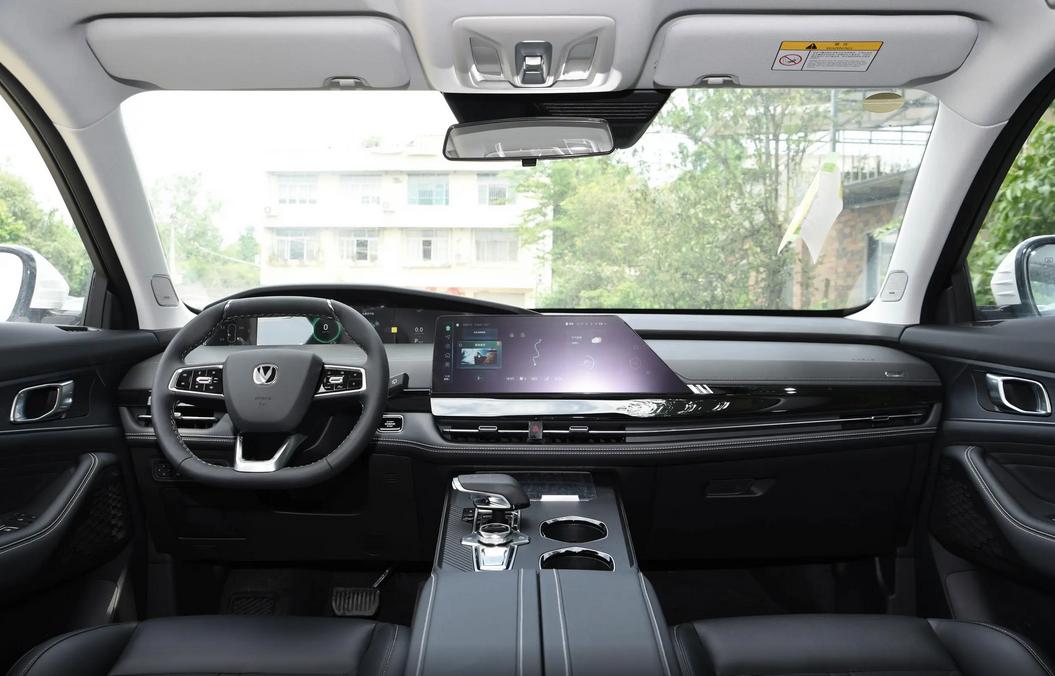 進入長安UNI-K的座艙,黑色和香檳棕兩種配色風格給到,功能分區明了,3.5+10.2+9.2全液晶儀表和12.3英寸觸控屏錯落有致,UI界面緊跟潮流,符合年輕用戶的審美。三輻式方向盤不是中規中矩的圓,方便駕駛員查看行車信息,中控屏功能配置齊全,車聯網、OTA全都有,主駕駛位可喚醒語音助手“小安”,發布操作車內設備、導航功能等等。不僅如此,該款車的觸控屏下方還保留了一排車輛觸控按鍵,比集成在屏幕內的車型好操作,但鋼琴烤漆面板容易留下手印。