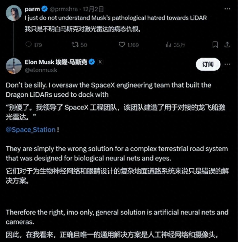 這不是鋼鐵俠唯一一次Diss激光雷達,前不久,他在社交媒體上再次炮轟激光雷達是“錯誤的解決方案”。