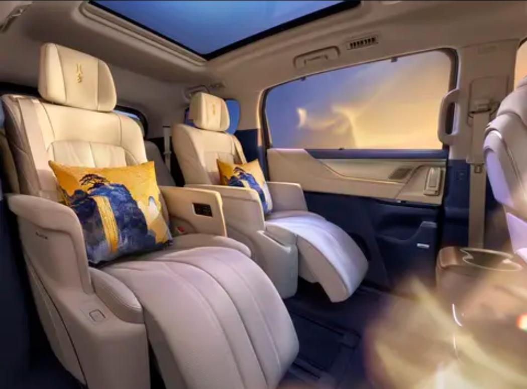 別克GL8陸尊PHEV八方來財版在內飾方面,延續了現款車型的設計風格,主要對一些細節的顏色搭配和材質做出調整,中控臺還提供30英寸曲面屏幕,內飾一些細節還增加了金色裝飾件,八方來財版還提供金色裝飾件和專屬抱枕。