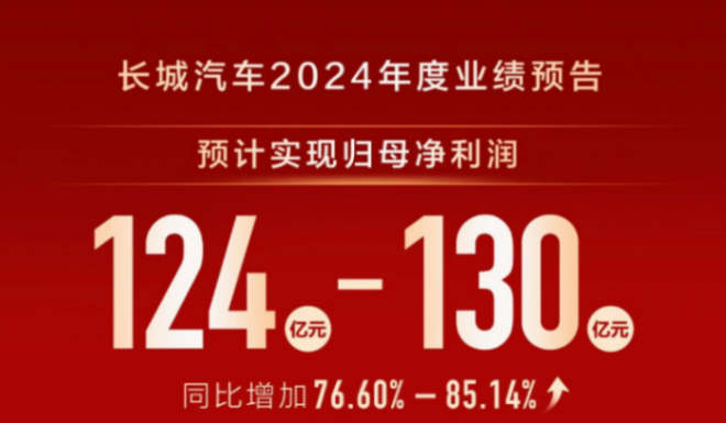 事實上,長城反而是賺爆了。不久前,長城發(fā)布了2024年的財報預(yù)告,預(yù)計凈利潤124-130億,同比大漲了76.6%-85.14%。