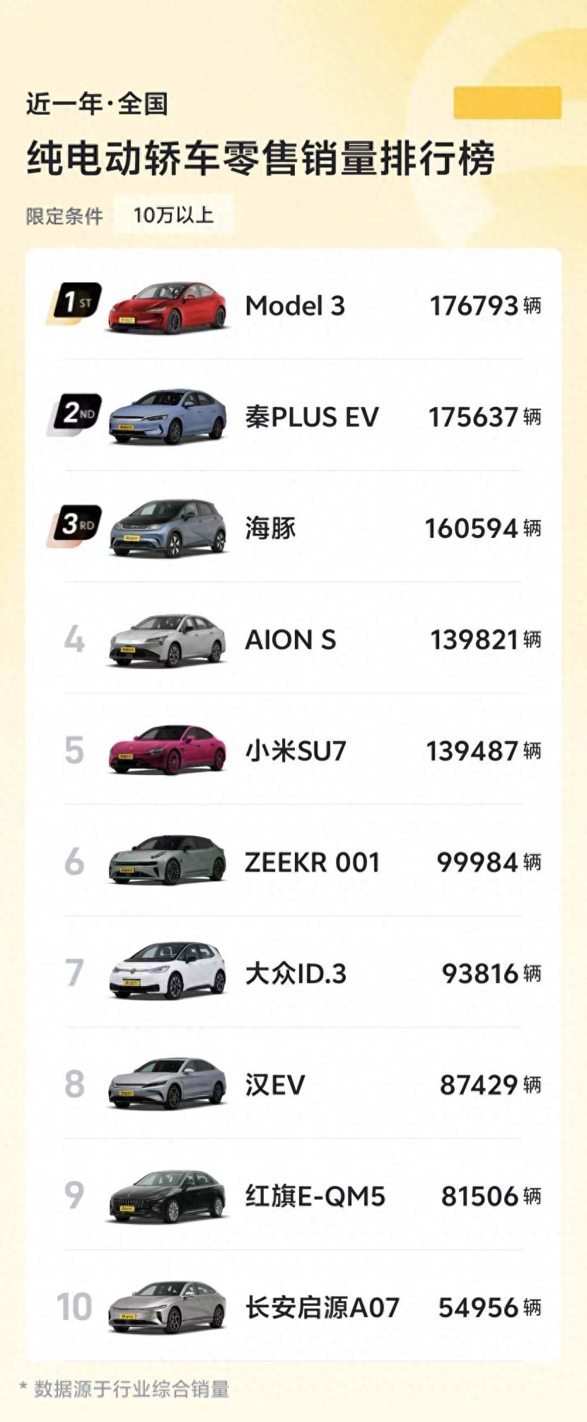 然而有些人不知道的是,特斯拉的另一款暢銷車型Model 3,在純電轎車領域也是風頭無兩。即便有小米SU7等一眾對手追趕,Model 3依然牢牢鎖定2024年中國豪華純電轎車銷冠的寶座。事實上,在所有超過10萬元的純電轎車里,賣得最好的就是Model 3。