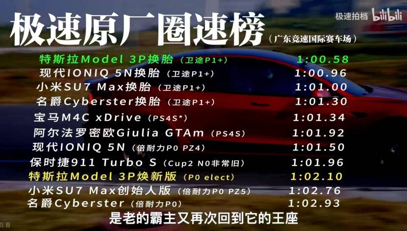 無數豪華車、性能車的對比測評都證明了這一點。比如新年剛過,全網擁有超1000萬粉絲的中國頭部汽車自媒體“極速拍檔”就讓Model 3高性能版同小米SU7 Max等其他電車同場競技,結果Model 3高性能版成為刷新圈速的新霸主,達到1分00秒58的最佳成績——“這可是頂級性能車,像寶馬M Power、像保時捷911一樣的成績。”