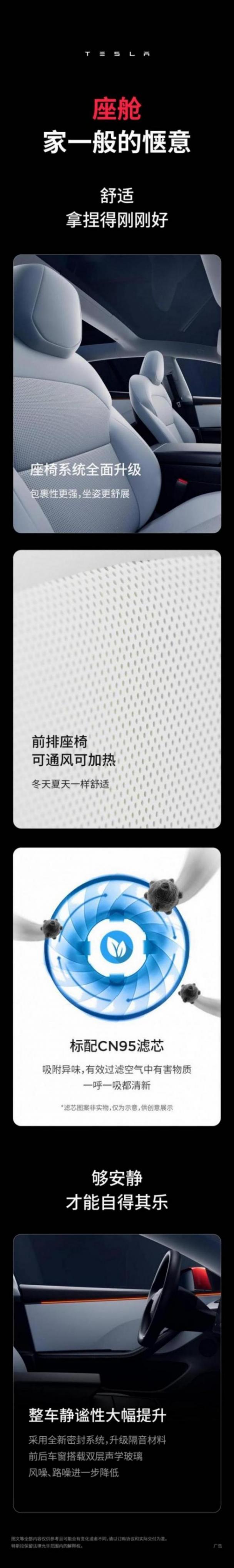 一般來說,車輛的運動操控性能跟乘坐舒適性是不兼容的,但特斯拉就是能做到讓消費者“魚與熊掌可以兼得”。同煥新Model Y一樣,Model 3在座艙舒適性方面做了非常大的升級,不僅新增了前排座椅通風,而且整車靜謐性進一步提升,在不犧牲駕駛樂趣的前提下,懸架舒適性大幅提高,顛簸路面濾振性十分出色。