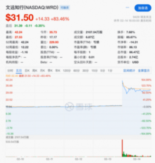 2月14日晚間,廣州自動駕駛公司文遠知行(WeRide)在美股盤前飆漲超120%,開盤后漲幅一度擴大至140%,觸發盤中熔斷。