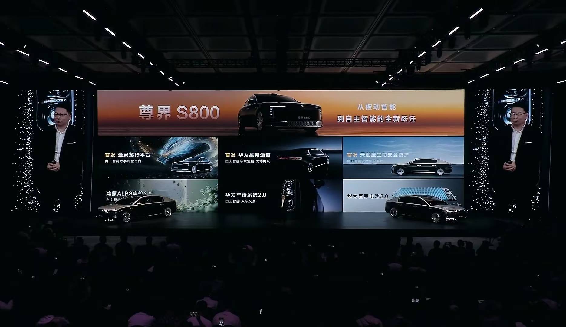 發(fā)布會(huì)上,余承東講解了包括首發(fā)途靈龍行平臺(tái)、首發(fā)天使座主動(dòng)安全防護(hù)系統(tǒng)、首發(fā)華為星河通信、鴻蒙ALPS座艙2.0、華為車語系統(tǒng)2.0以及華為巨鯨電池2.0。