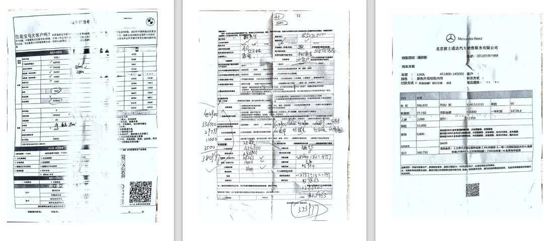 ▲4月9日,寶馬、奧迪和奔馳銷售顧問報價單