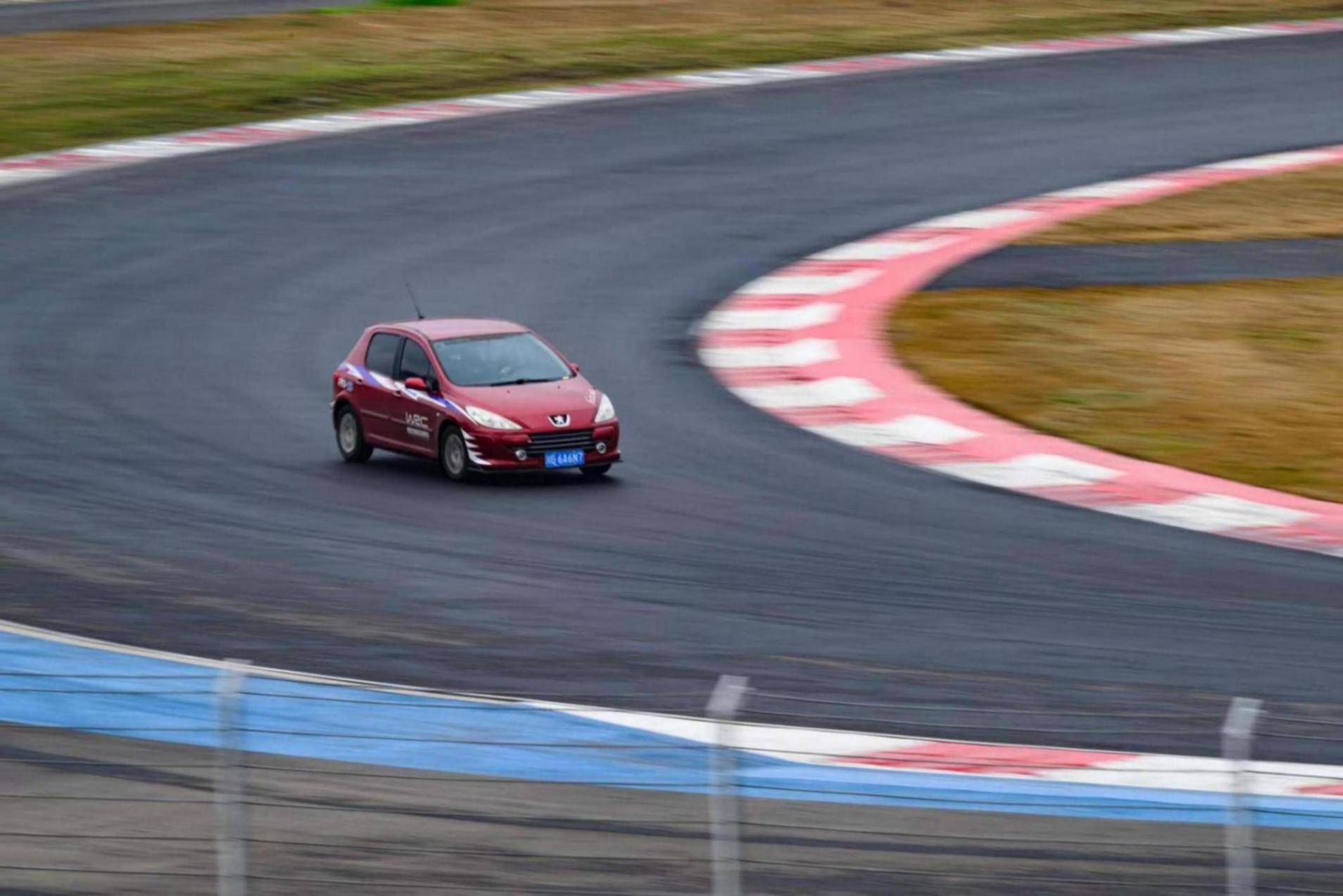 雖然307的1.6L發動機絕對動力有限,但開在賽道上降擋推高轉速后,它也能擠出一絲蠻力,出彎時全油門推進,穩定性保持得很好。可以說對佳昕這樣的新人而言,標致307是很好的賽道練習車,在上限很低的情況下,能夠學習擋位選擇和跟趾動作,安全地探索自己的駕駛技術邊界。