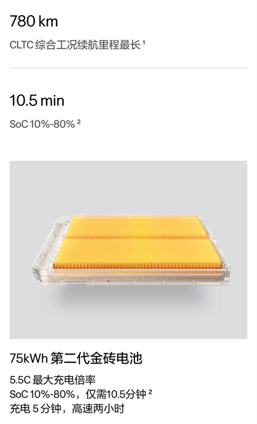 •續(xù)航:75kWh電池CLTC續(xù)航605km,100kWh版780km,實(shí)測(cè)達(dá)成率超88%,支持5C快充(10分鐘補(bǔ)能400km)。