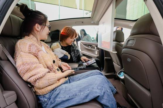 從店端情況來看,也可見享界S9增程版熱度之高,看車的人絡繹不絕,筆者也是等了好一會兒才得以進車內體驗。要說這一次享界S9增程版最讓人興奮的亮點功能之一,當屬全新華為車語系統。玩轉豪華,就必須來點儀式感。對于豪車來說,很多都會配備迎賓燈,讓用戶拉開車門時,即可看到專屬的品牌、車型徽標。享界S9增程版則更進一步,首創了交互式迎賓。實際體驗來看,筆者在中控大屏設置了一個步步生花的燈效,車外有人靠近車輛即可觸發,儀式感直接拉滿。