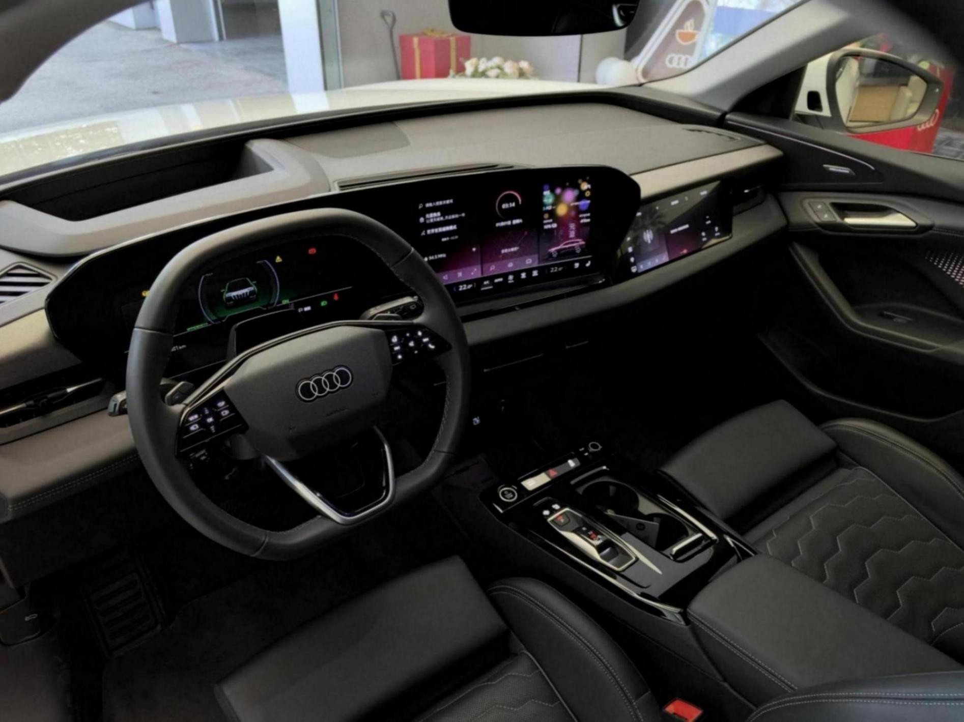 進入車內,環抱式的中控臺上配備由11.9英寸奧迪虛擬座艙+14.5英寸MMI觸控屏組成的懸浮式曲面雙聯屏,再配合10.9英寸副駕娛樂屏以及88英寸AR-HUD抬頭顯示,繼續強調科技前衛感。同時還將配備全新雙平底多功能方向盤、電子滑塊式換擋機構、15W手機無線充電、22揚B&O 3D音響系統(含頭枕音響)、氛圍燈、全景天窗、座椅/方向盤加熱、座椅按摩、64L前備箱等。