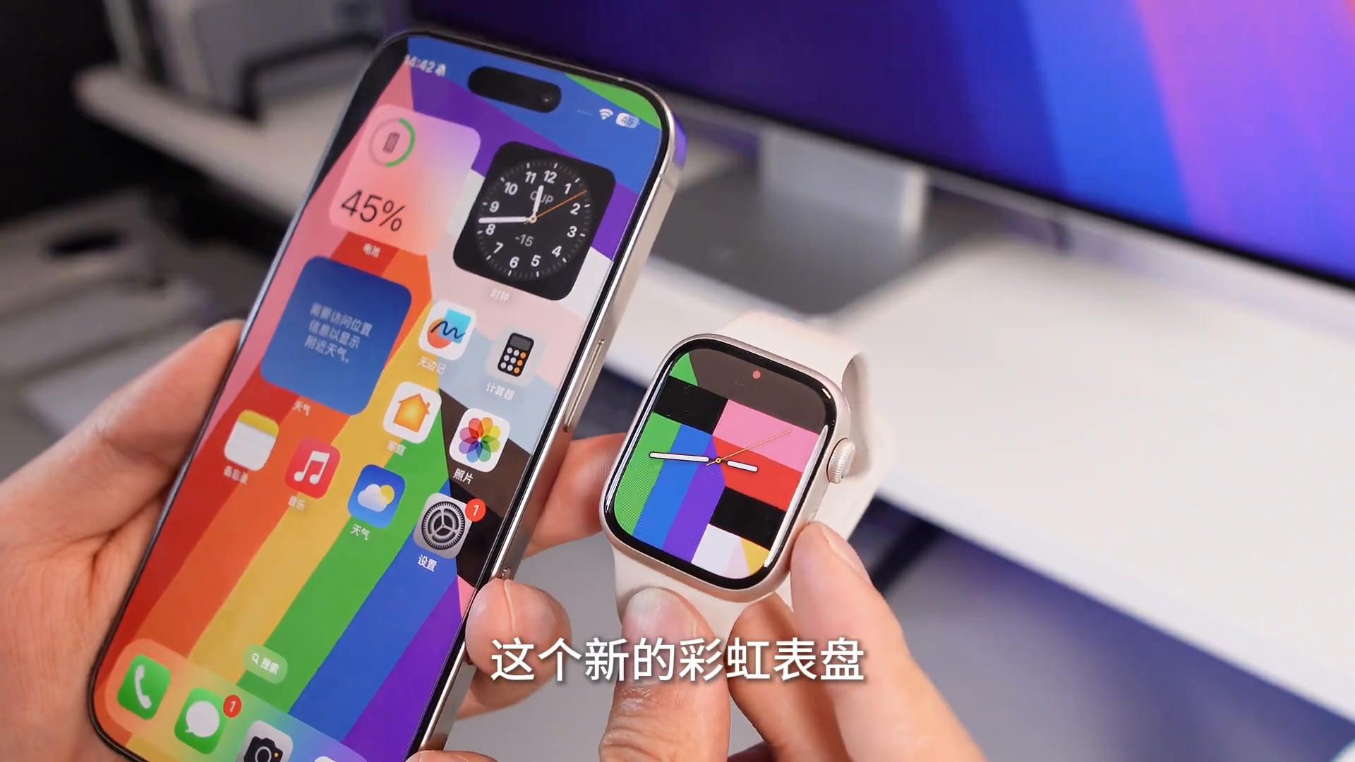 當然不確定它總共有多少種,我也沒去試,但是剛剛看了一下,每次都有不一樣的效果,并且它不同的效果也都有鎖屏到桌面的過渡效果,其實還可以。當然蘋果也給Apple Watch配套做了新的彩虹表盤,只需要把Apple Watch更新到watchOS11.5的正式版就可以使用了。