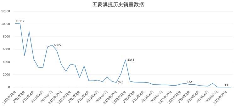 可以說,五菱凱捷是五菱在MPV市場由盛轉衰的轉折點,剛推出不久的時候,五菱凱捷的銷量能夠破萬,但后來銷量急轉直下,并一滑到底,直到去年11月已跌至只剩個位數(shù)。