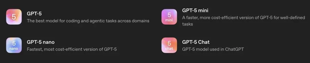 這次發布的GPT-5擁有四個版本: