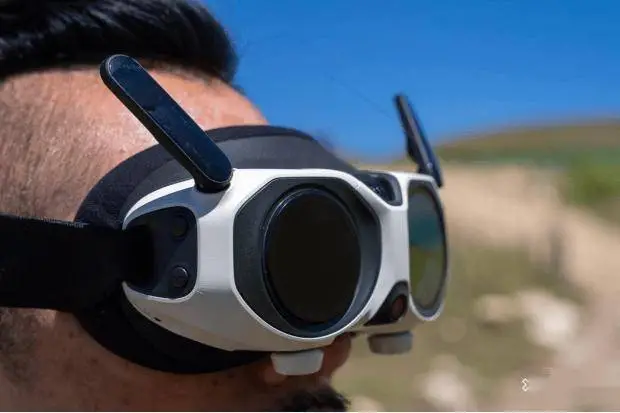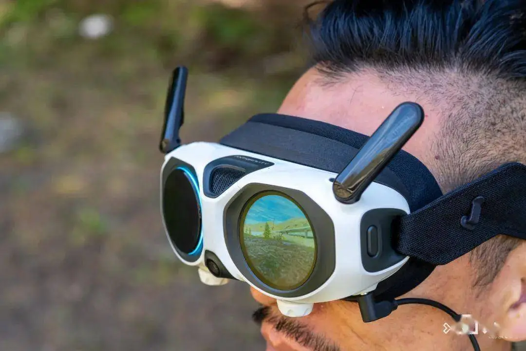 飛行眼鏡就更有意思了,你可以把它當(dāng)成一個更加輕便的 VR 眼鏡,飛行的時候可以沉浸式欣賞美景,兩邊的小天線也挺可愛的。