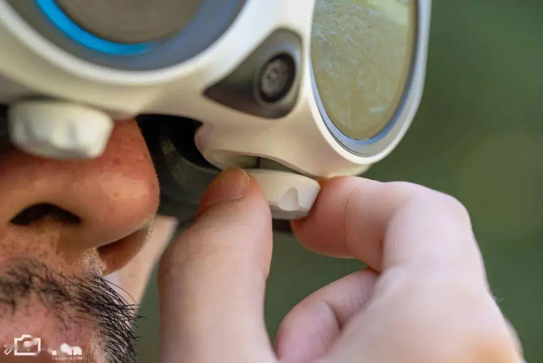 另外別看這眼鏡不算大,但它不僅里面能看風(fēng)景,外面還有一塊顯示實時飛行畫面的圓形屏幕,這樣當(dāng)你專注飛行的時候,和你一塊出來玩的朋友也不至于原地刷手機,可以一起圍觀看看實時的風(fēng)景。
