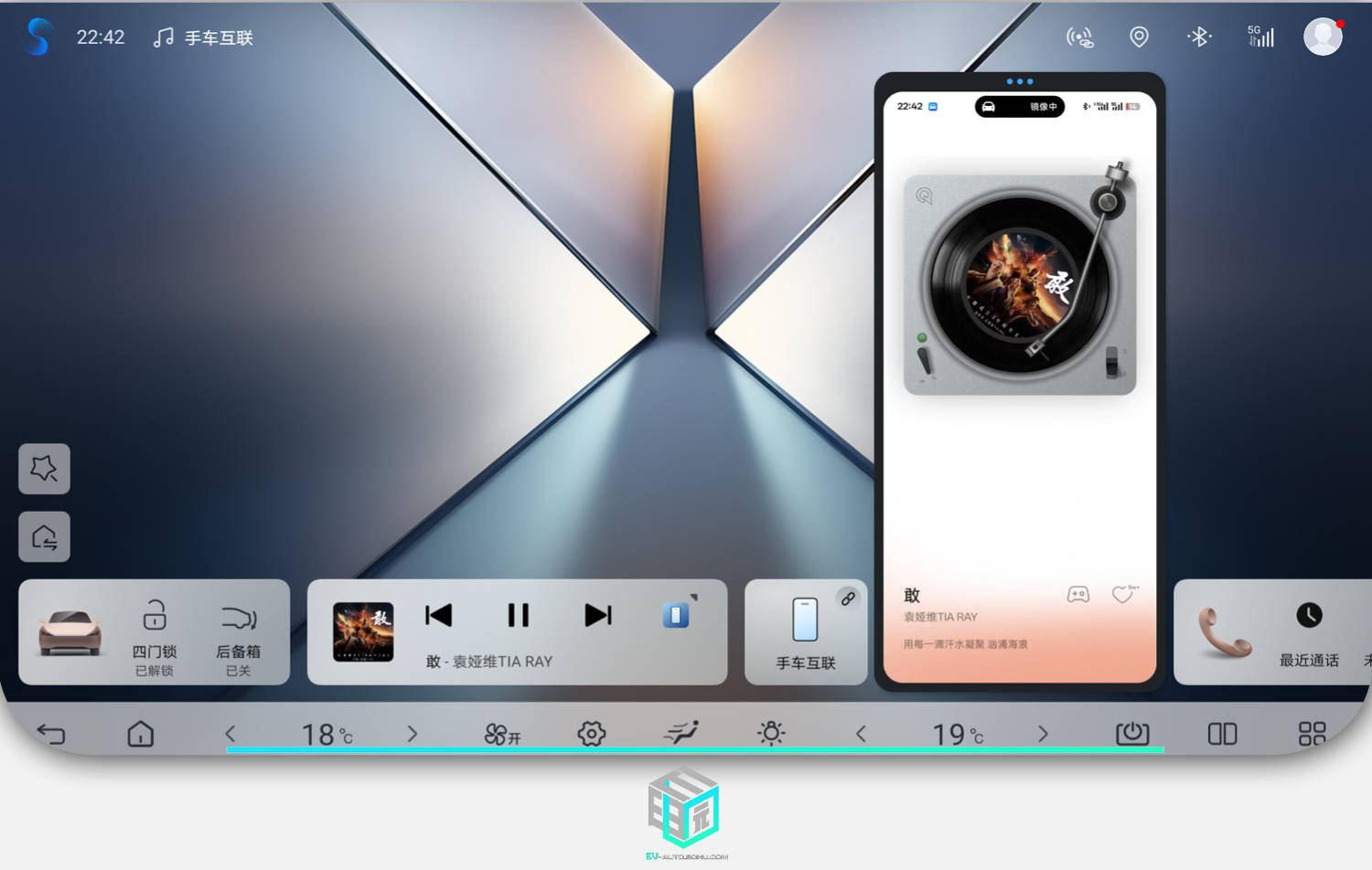 “鏡像模式”可以直接把車機變成手機高清大屏,手機車機無縫互聯。比如“音樂接續”可以把手機上的音樂流轉到車機上,“大屏觀影”能夠在車內繼續看之前手機追的熱播劇, “搖一搖”手機“導航流轉”就能鎖定朋友發來的目的地,“隱私模式”在車機上為你開啟 “i人” 隱藏小秘密。