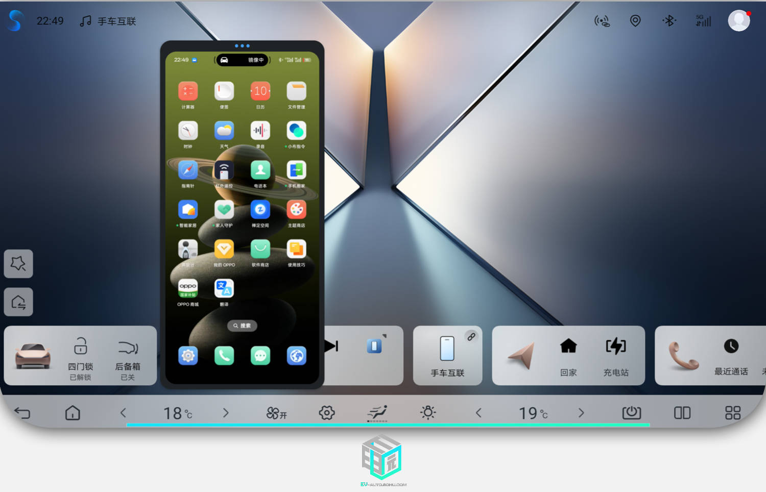 在智能座艙方面,此次OTA更新新增了手車互聯功能,可以將手機生態同步車機大屏,支持鏡像模式、大屏觀影、導航流轉、音樂接續、隱私模式等,華為、OPPO、vivo、小米等國內主流廠商都能用。