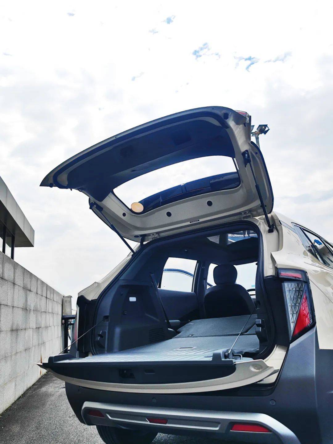 “天地門”等于把原本的長尾門分成上下兩塊,這樣上半部門面積變小,打開時所需的車后空間也更小,用戶基本就不太需要考慮停車時預留車后空間的問題了,并且我還發現,如果身上只是有一些小背包、小物品要放,我只需要打開納米06的上半部尾門,然后把東西往后備廂里一丟即可,很方便。還有,由于上半部門的尺寸小、重量輕,開啟至上止點的上翹角度不高,因此關閉時操作起來也很輕松省力,相信就算個子嬌小的女性用戶也能倍感貼心。