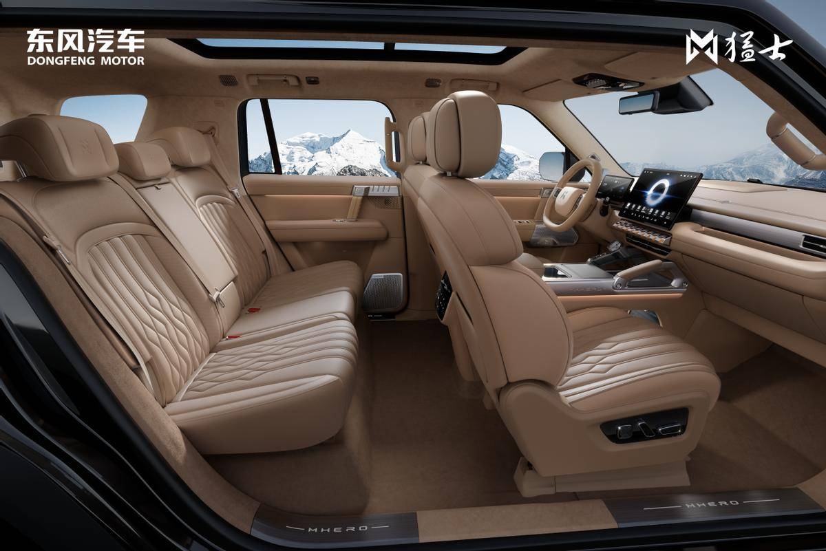 猛士M817首先打破了“硬派越野=簡陋工具車”的刻板印象。它用“雄魂美學2.0”重新書寫設計語言:車身如東方醒獅般充滿力量感,前大燈還原古代兵器“戈”的鋒芒,尾燈亮起時宛若利劍出鞘。坐進駕駛艙,大面積NAPPA真皮與金屬飾條的交織觸手可及,飛航式撥桿和潛水表式旋鈕帶來飛行器般的操控儀式感,256色呼吸氛圍燈在夜間勾勒出機械與科技的浪漫。六款國風車身色與三款東方意境內(nèi)飾,讓野性外表下流淌著詩意的溫度。
