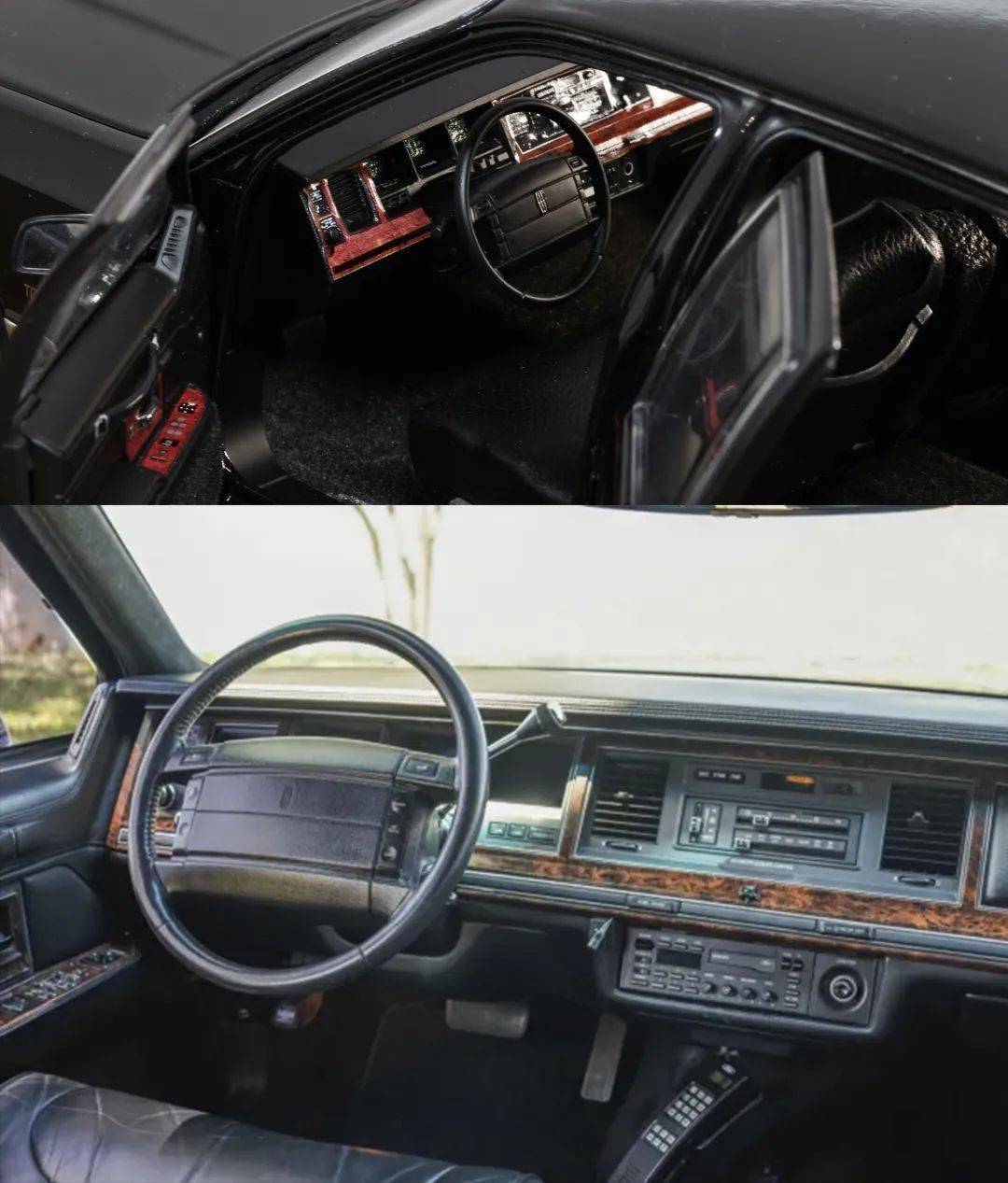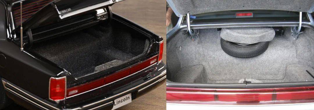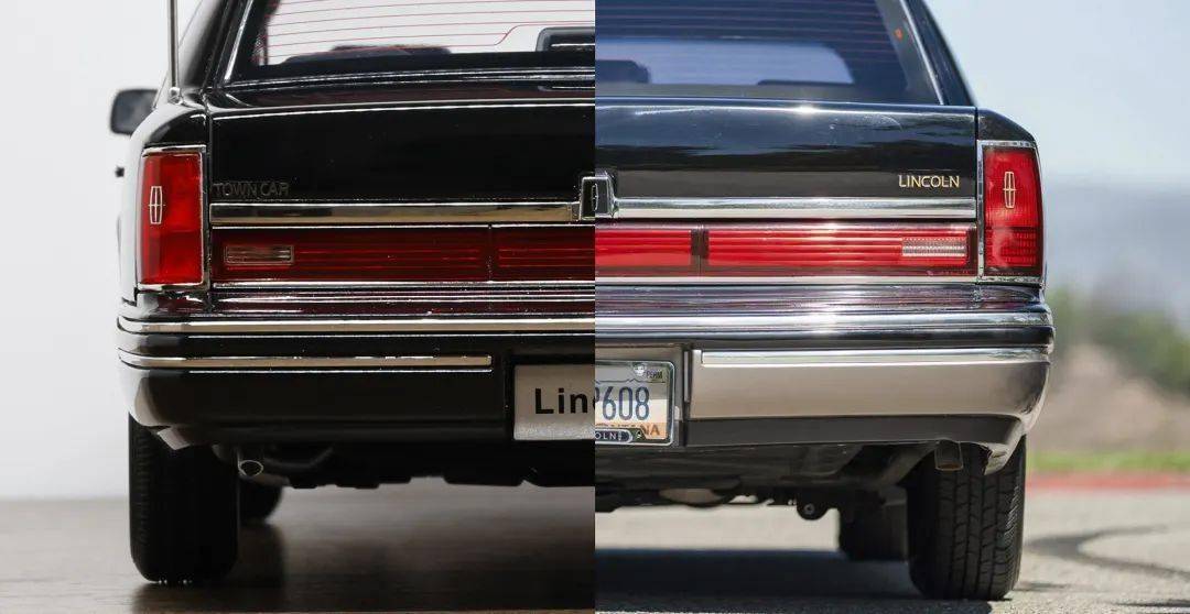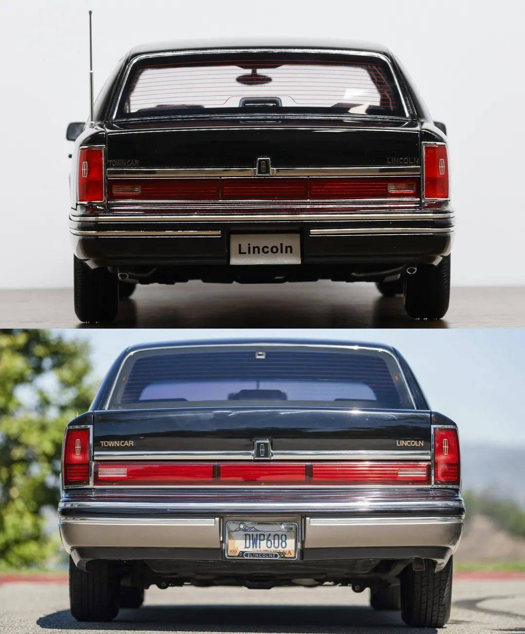 上面有個細節,上圖模型是雙出排氣管,而下面真車是單出排氣管,那是因為1994年后的Town Car是雙出排氣管的。