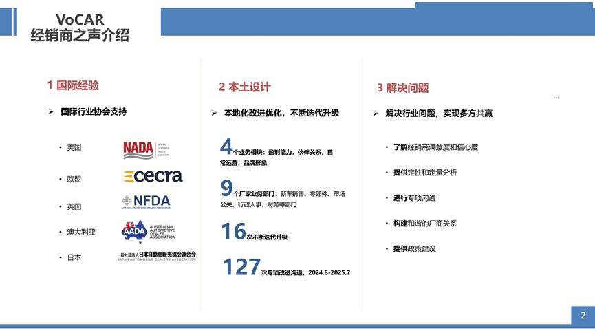 自2016年啟動以來,VoCAR中國汽車經銷商之聲調研項目(以下簡稱"經銷商之聲")已持續開展十年追蹤研究。該項目采用半年度調研機制,每年定期發布行業版報告,系統評估經銷商對其合作汽車品牌在滿意度、信心度兩大維度的動態評價,同時收集經銷商對品牌管理政策及溝通機制的建設性意見。