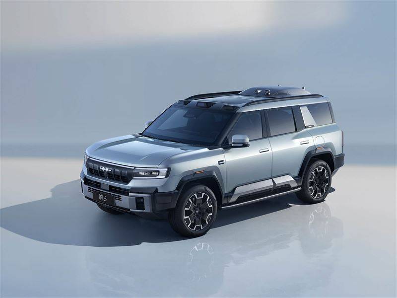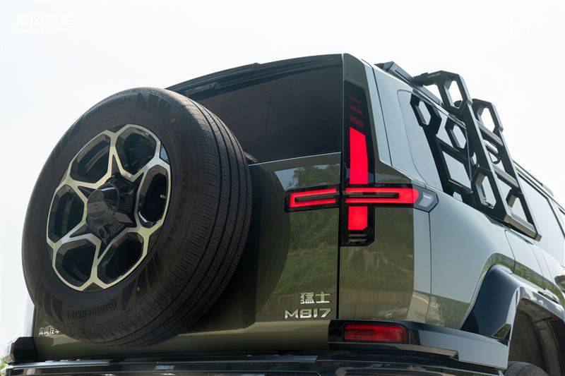 猛士M817的外觀依然是比較夸張激進的類型,猶如機甲般的設計顯得十分獨特,犀利的燈組也進一步強化了兇狠的視覺效果,側面外擴的輪眉充滿力量感,車尾十字形燈組和大哥917有些類似,辨識度很高,外掛的方型小書包作為儲物空間的拓展。豹8的造型更加城市化,前臉中規中矩,更長的車身長度也使得側面看起來更加修長,車尾外露的備胎增添了野性。