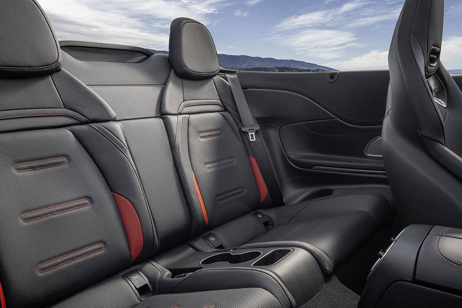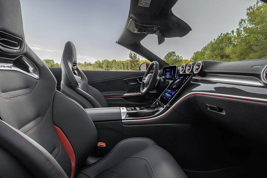 內飾來看,新車配備了12.3英寸中控屏以及11.9英寸全液晶儀表,車機系統擁有更多駕駛相關的AMG專屬功能。車內相較普通版車型采用更多的碳纖維材質,搭配紅色縫線,進一步增加戰斗氛圍。同時新車配備了AMG運動座椅,擁有更強的側翼支撐,并且頭枕還擁有暖風系統,能夠在敞篷打開時讓駕駛員和乘客保持溫暖。