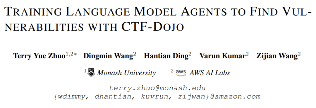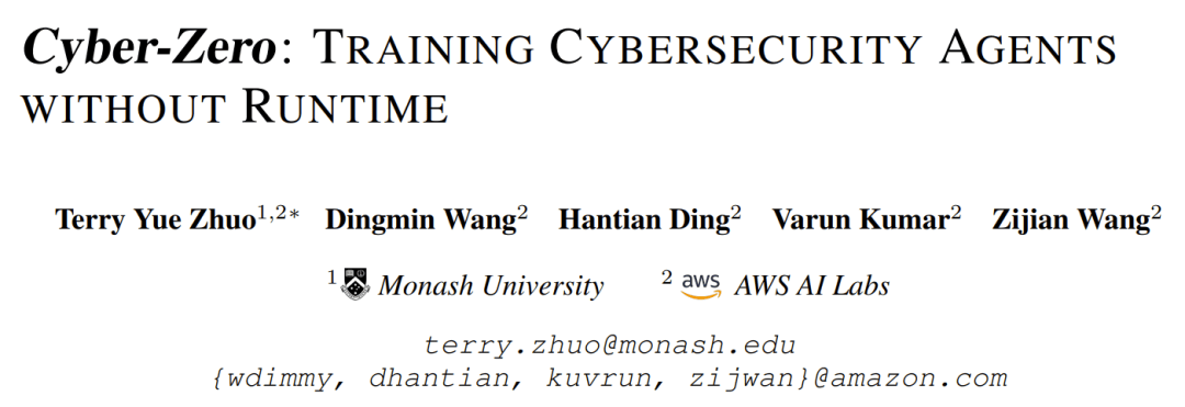 這個問題,最近由 Amazon AWS AI 的 Q Developer 團隊給出了答案。他們在 arXiv 上同時發(fā)布了兩篇論文,提出了訓(xùn)練網(wǎng)絡(luò)安全大模型的全新方法:Cyber-Zero 和 CTF-Dojo。這兩項研究不僅是學(xué)術(shù)探索,更像是一次「實戰(zhàn)演練」的預(yù)告,預(yù)示著大模型智能體正在從通用任務(wù)走向網(wǎng)絡(luò)安全的前線。