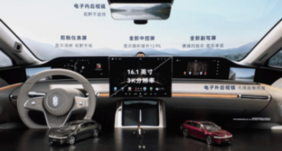 享界S9T進行了全新的座艙設計,采用了一塊16.1英寸的3K分辨率屏幕。副駕設計了全新的娛樂屏幕,距離更遠,可以抑制副駕的暈車感受。