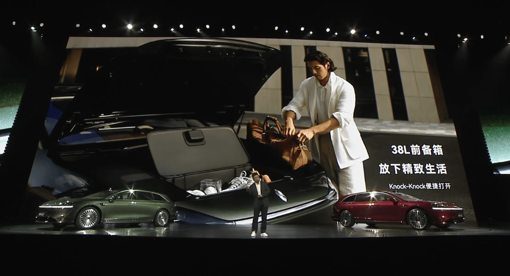 享界S9T純電版還會有一個38L的前備箱,敲一敲就能打開前備箱。