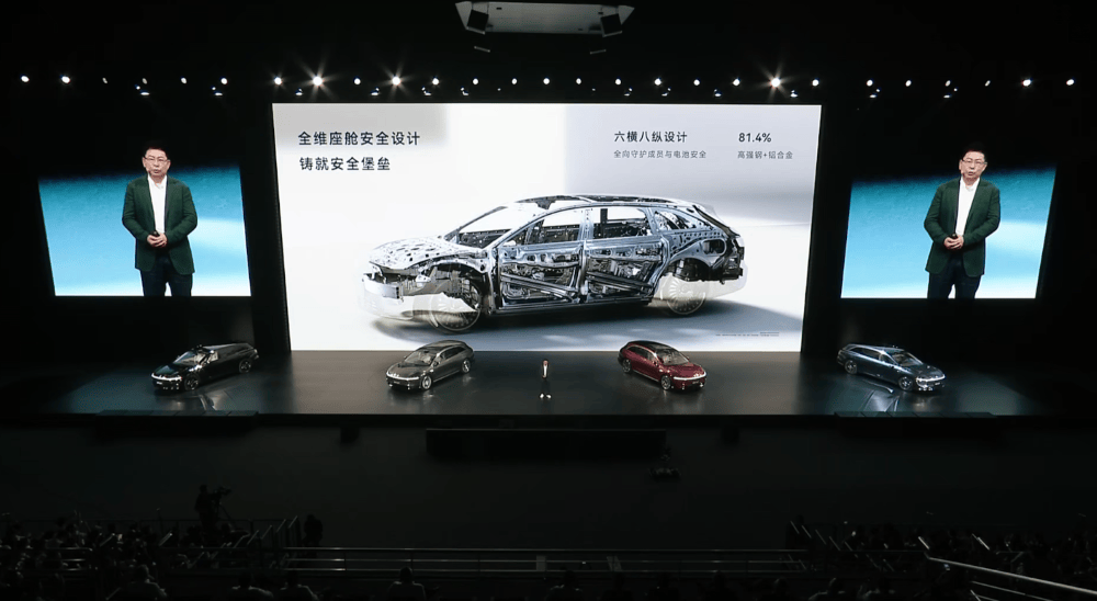安全性也是余承東這次發布會上重點講的內容之一。被動安全方面,享界S9T采用了超高強度籠式安全車身,前乘員艙、A柱、車門和前后門蓋都進行了加強。
