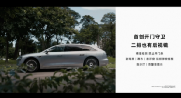 此外,華為還給享界S9T新增了一個開門提示的功能,監測到后方有車之后,電動門會暫停開門,避免“開門殺”。