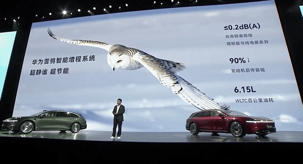 為了保持行車靜謐性和穩定性,享界S9T搭載了華為雪鸮智能增程系統,其發動機啟停振幅將下降90%,WLTC百公里油耗為6.15L。