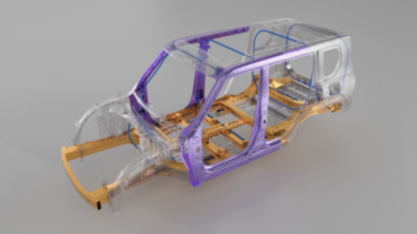 基于此,廣汽創(chuàng)新性地提出了“嵌入式大梁+多元環(huán)籠”的車身架構(gòu)。該技術(shù)靈感來源于中國古代轎子的堅固轎架,將傳統(tǒng)非承載式車身的獨立大梁,創(chuàng)新性地嵌入承載式車身主體框架中,真正實現(xiàn)了“車身即車架,車架即車身”的一體融合,該設(shè)計打破了“強悍越野必須依賴獨立大梁”的行業(yè)傳統(tǒng)認知。