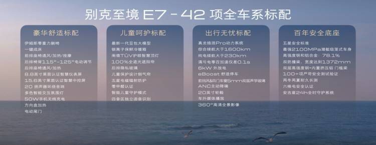 作為別克至境E7的入門款車型,1600大滿配版將42項豪華舒適配置悉數(shù)納入標(biāo)配,實現(xiàn)一步到位的滿配體驗。新車全系標(biāo)配伊姆斯零重力躺椅、15.6英寸萊茵認證中控屏、20揚聲器音響與電動尾門等配置,兼顧舒適與品質(zhì)。面向有娃家庭用戶,新車行業(yè)首發(fā)搭載最新一代豆包大模型,提供智能且溫暖的陪伴;配合同級第一的銀離子保鮮冷暖箱、同級唯一的南德TüV護眼智慧頂燈、兒童保護設(shè)計氣簾等,至境E7為孩子構(gòu)建起全維度呵護體系。出行體驗上,真龍插混Pro系統(tǒng)為至境E7帶來1630公里綜合續(xù)航,新車還支持6kW外放電,配合eBoost舒適停車、20英寸輪轂、360°高清全景影像、雙層聲學(xué)玻璃和ANC主動降噪,大幅提升家庭出行所需的便利性與靜謐感。同時,至境E7并未忽視家庭用戶更關(guān)注的整車安全,其采用最高2100MPa潛艇級超高強度鋼構(gòu)成的“十橫九縱”籠式框架,搭配1372mm寬雙防撞梁,全面提高被動安全表現(xiàn)。車內(nèi)電磁環(huán)境方面,至境E7已獲得中汽中心頒布的NESTA六維電安全認證,輔以安吉星24h全時守護系統(tǒng),構(gòu)筑系統(tǒng)化安全防線。
